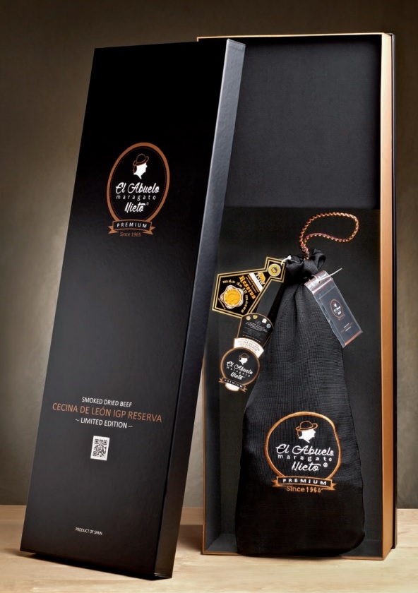 La cecina est une charcuterie espagnole halal très appréciée et dégustée par les fins gourmets. Cette viande de boeuf halal salée, séchée et affinée entre 6 et 12 mois, présente une faible teneur en graisses. La cecina est fumée au bois de chêne, ce qui lui confère un arôme très particulier.